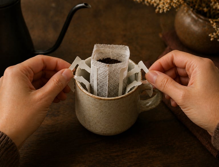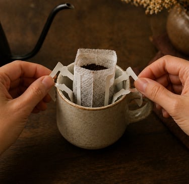 Disfruta la frescura y aroma de nuestro café en formato drip, práctico y delicioso.